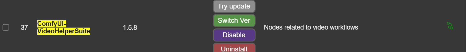 ComfyUI-VideoHelperSuite 등의 missing 커스텀 노드를 설치한다.