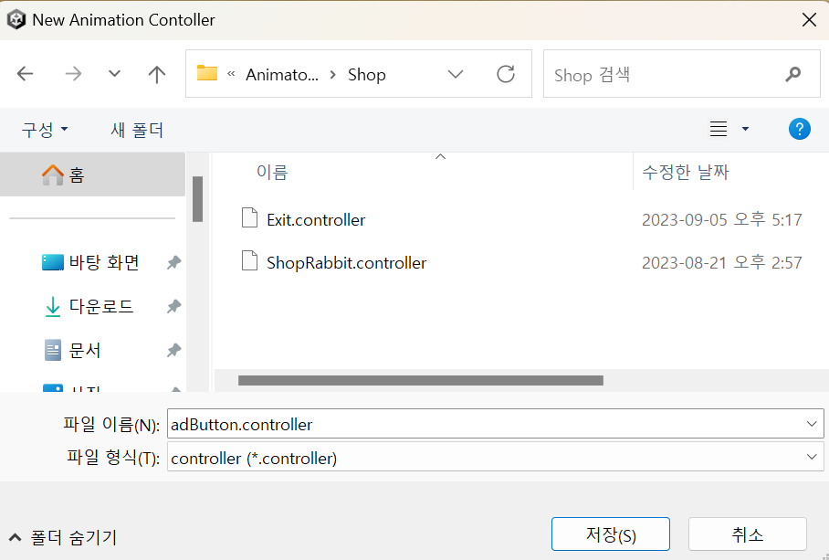 자동 생성 및 연결된 animation Controller와 애니메이션 파일